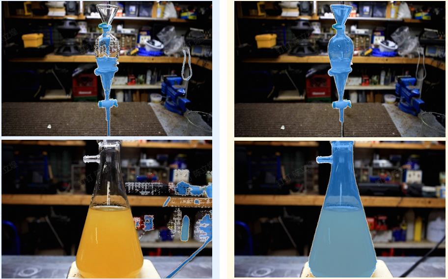 先选一个相对不大数据集LabPicsV1进行训练,用于跑通代码和调优方法的尝试。主要是对容器及其内部的材料(固、液体)进行分割,它具有一定难度且体量不大,很适合初步实验。